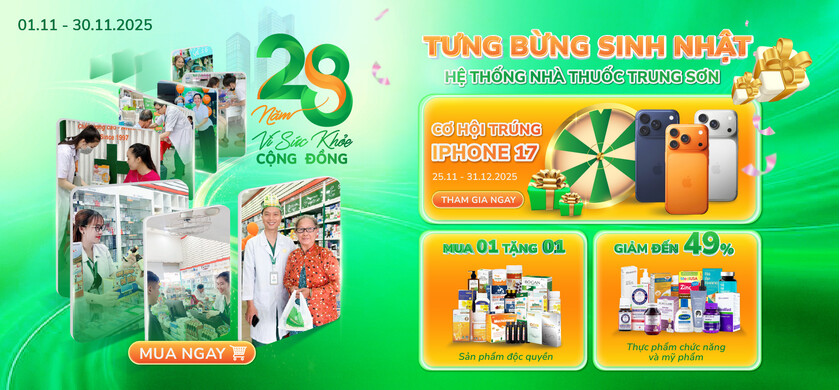Thực phẩm chức năng giảm đến 25% Thương hiệu Blackmores Sản phẩm thương hiệu Trung Sơn Care Sản phẩm thương hiệu Nucos Nước tẩy trang bí đao cocoon Dược mỹ phẩm ưu đãi Thực phẩm chức năng giảm đến 25% Top sản phẩm bán chạy Ưu đãi khách hàng thành viên Trung Sơn