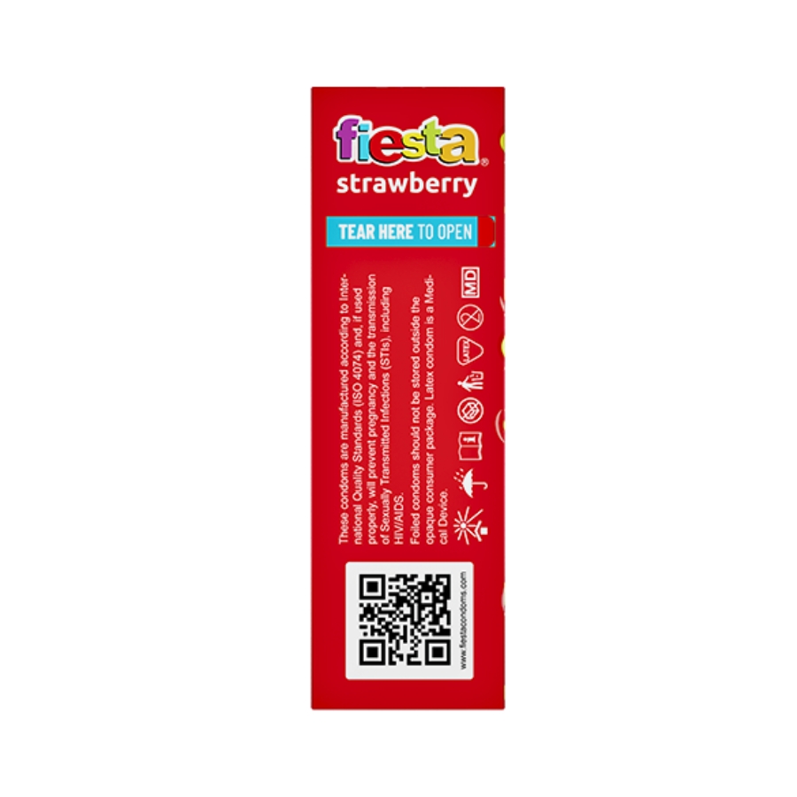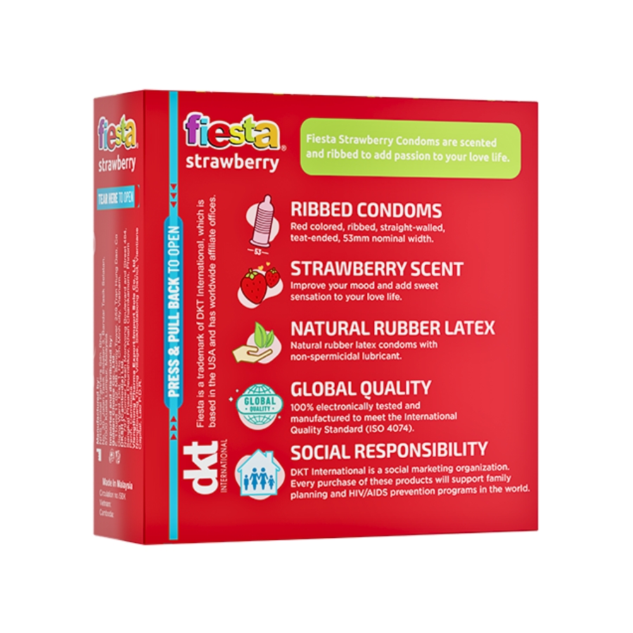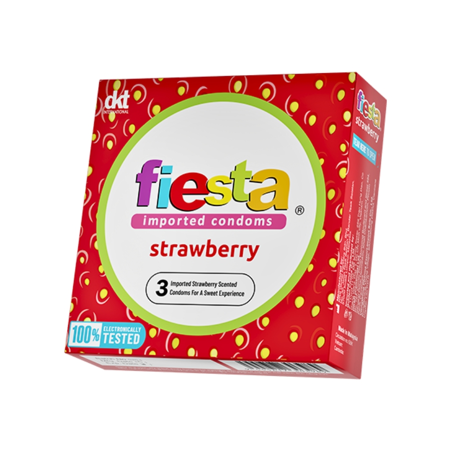 Bao Cao Su Fiesta Strawberry (53mm) – Rãnh Gân Hương Dâu (Hộp 3 Cái)