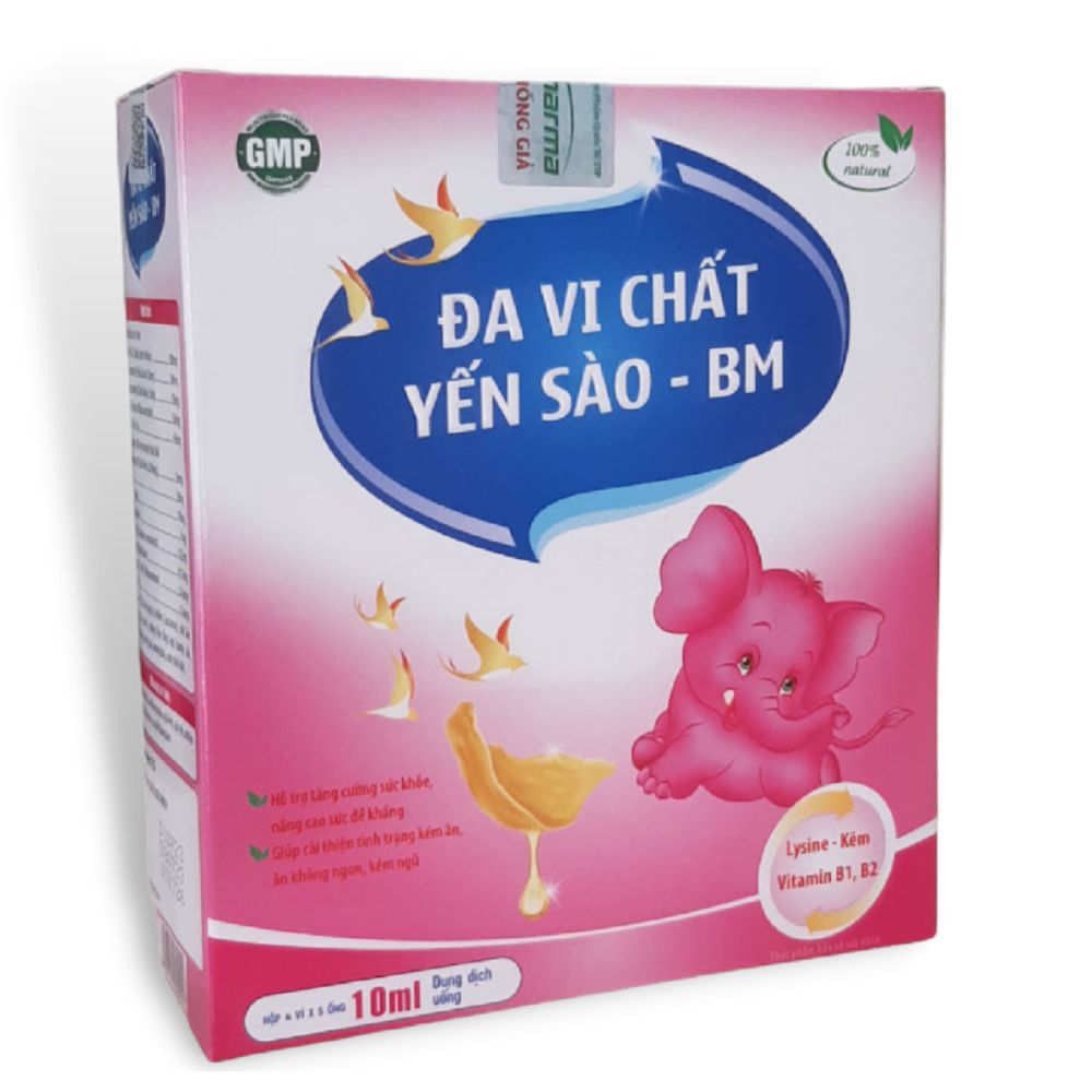 Đa vi chất Yến sào - BM là sản phẩm dinh dưỡng giúp hỗ trợ tăng cường sức khỏe và nâng cao sức đề kháng cho cơ thể. Thành phần chính của sản phẩm là yến sào, nổi tiếng với hàm lượng dinh dưỡng cao, chứa nhiều protein, vitamin và khoáng chất thiết yếu.