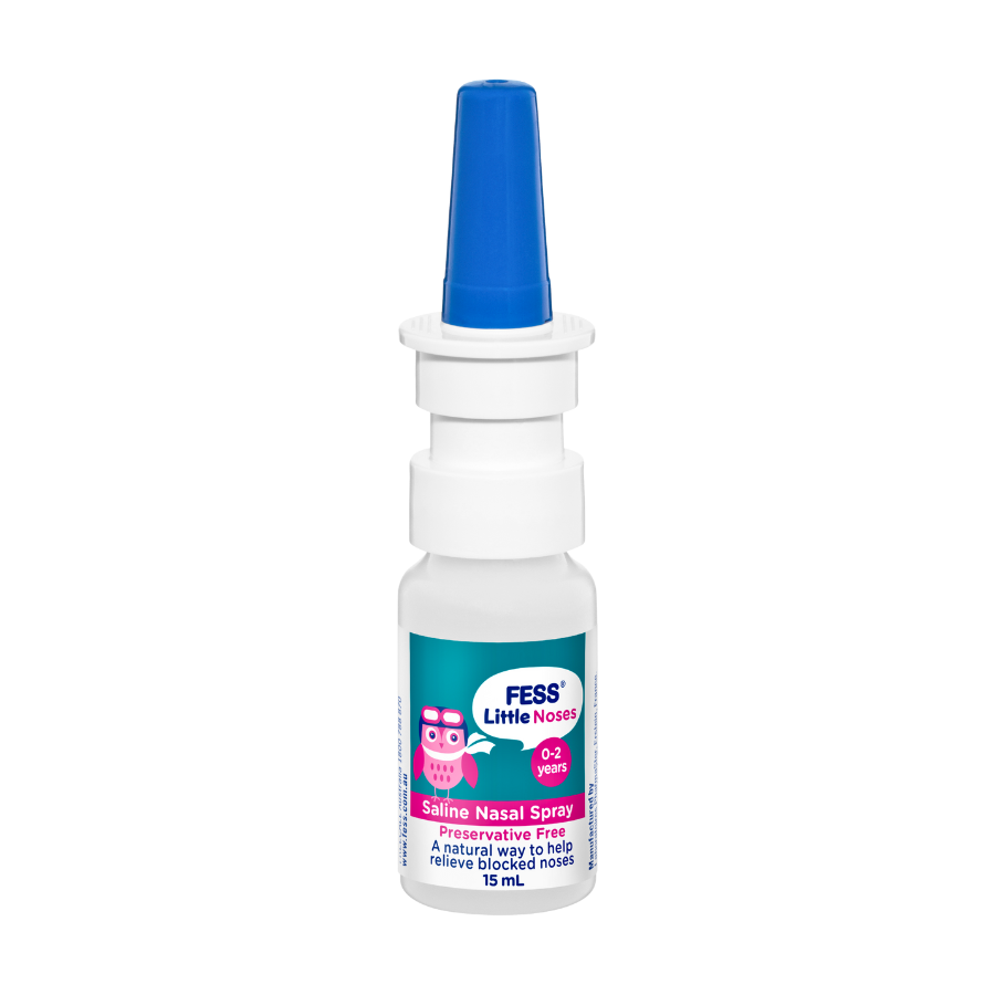Fess Little Noses Spray (+Aspirator) là nước muối biển sâu dịu nhẹ giúp dưỡng ẩm, làm mềm và loãng dịch nhầy, giúp mũi bé thông thoáng.