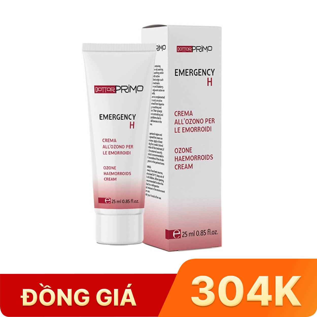 Kem Dottorprimo Emergency H chứa chiết xuất tự nhiên (ozonized sunflower seed oil, calendula, vaccinium myrtillus, ruscus aculeatus) và hoạt chất (glycyrrhetinic acid, escin), giúp kháng khuẩn, chống viêm, co mạch, tăng bền thành tĩnh mạch. Sản phẩm giảm đau, rát, ngứa, nứt hậu môn, làm dịu kích ứng và hỗ trợ ngăn tái phát trĩ.