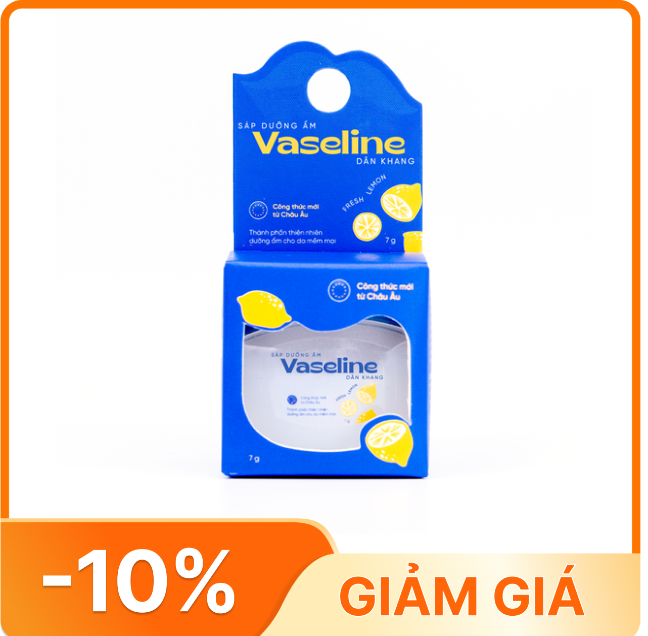 Sáp dưỡng ẩm Vaseline chanh 7G với thành phần dịu nhẹ: Kết hợp Vaseline, dầu thực vật và vitamin E nhập khẩu từ châu Âu, giúp đôi môi luôn được cấp ẩm và bảo vệ suốt cả ngày.
