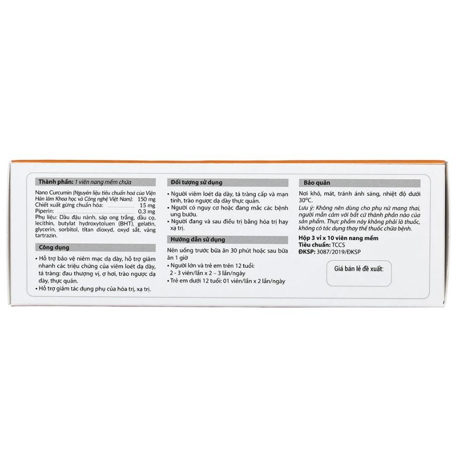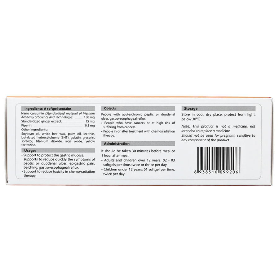 Nano Curcumin (Chuyển giao bởi Viện Hàn lâm Khoa học và Công nghệ Việt Nam): 150 mg