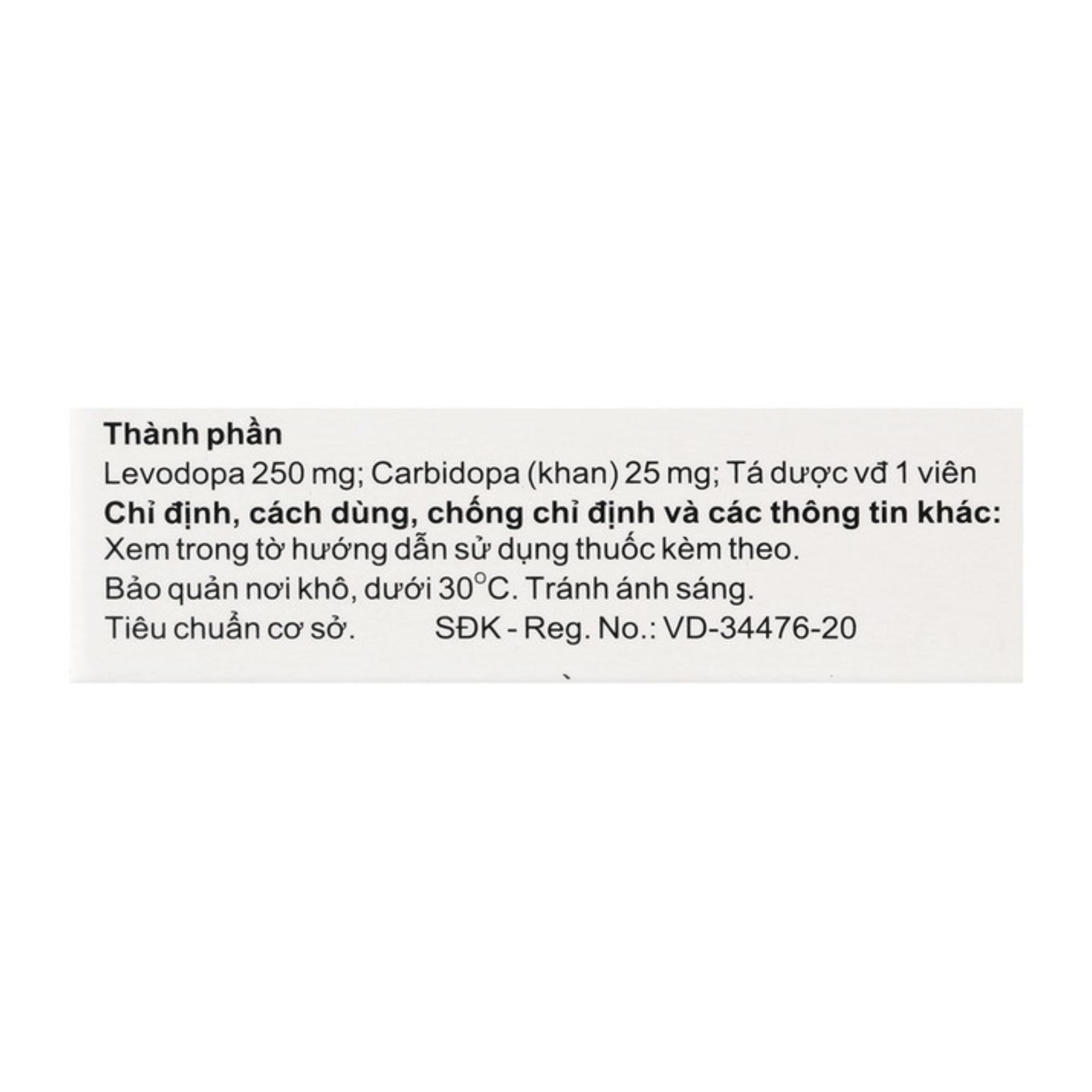 - Liều tối đa khuyến cáo: 800 mg levodopa + 200 mg carbidopa/ngày.